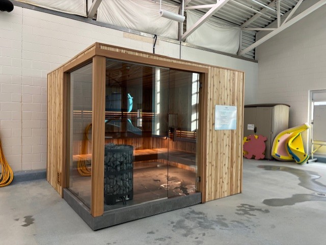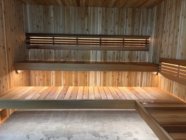 - Swimsuits are required to be worn at all times in the sauna